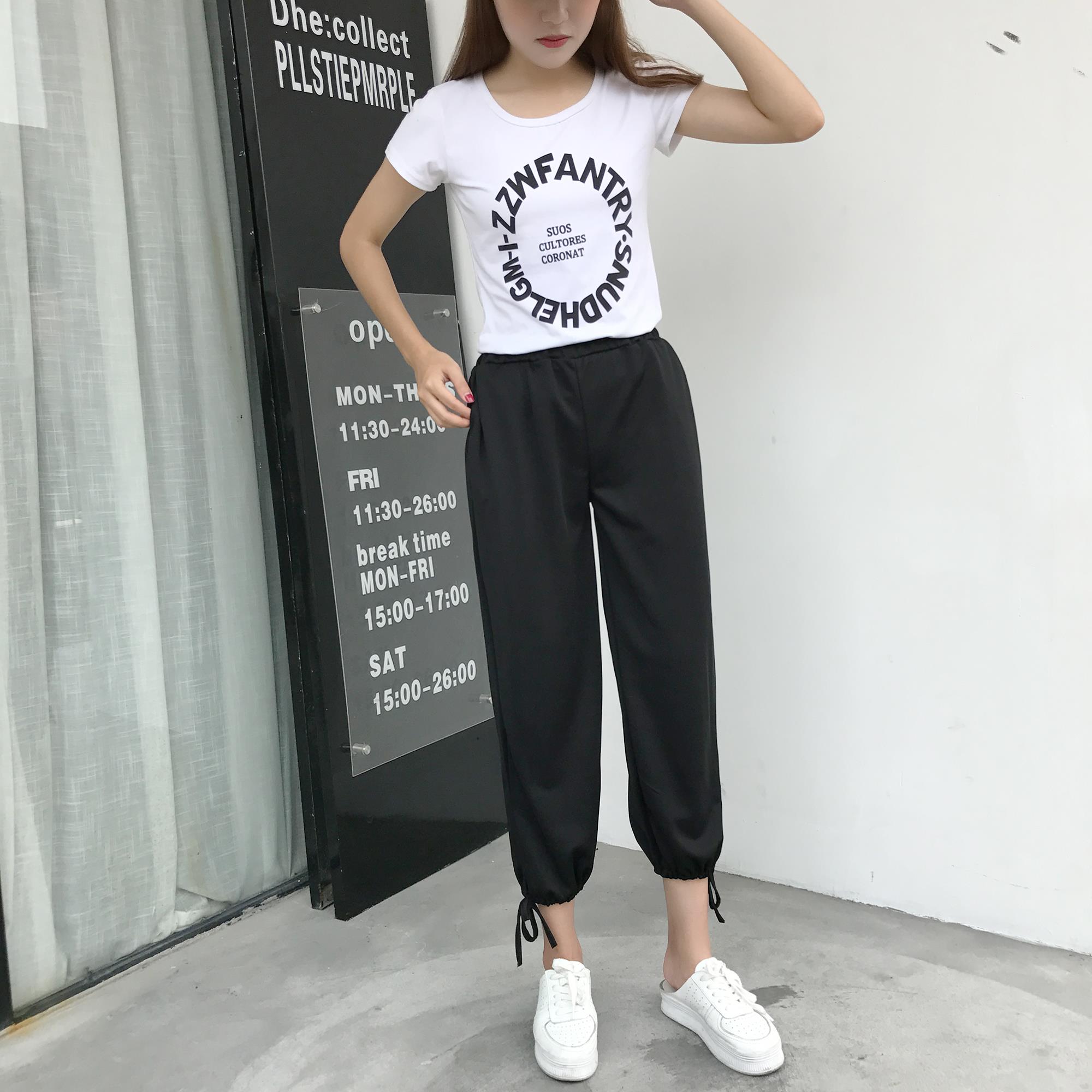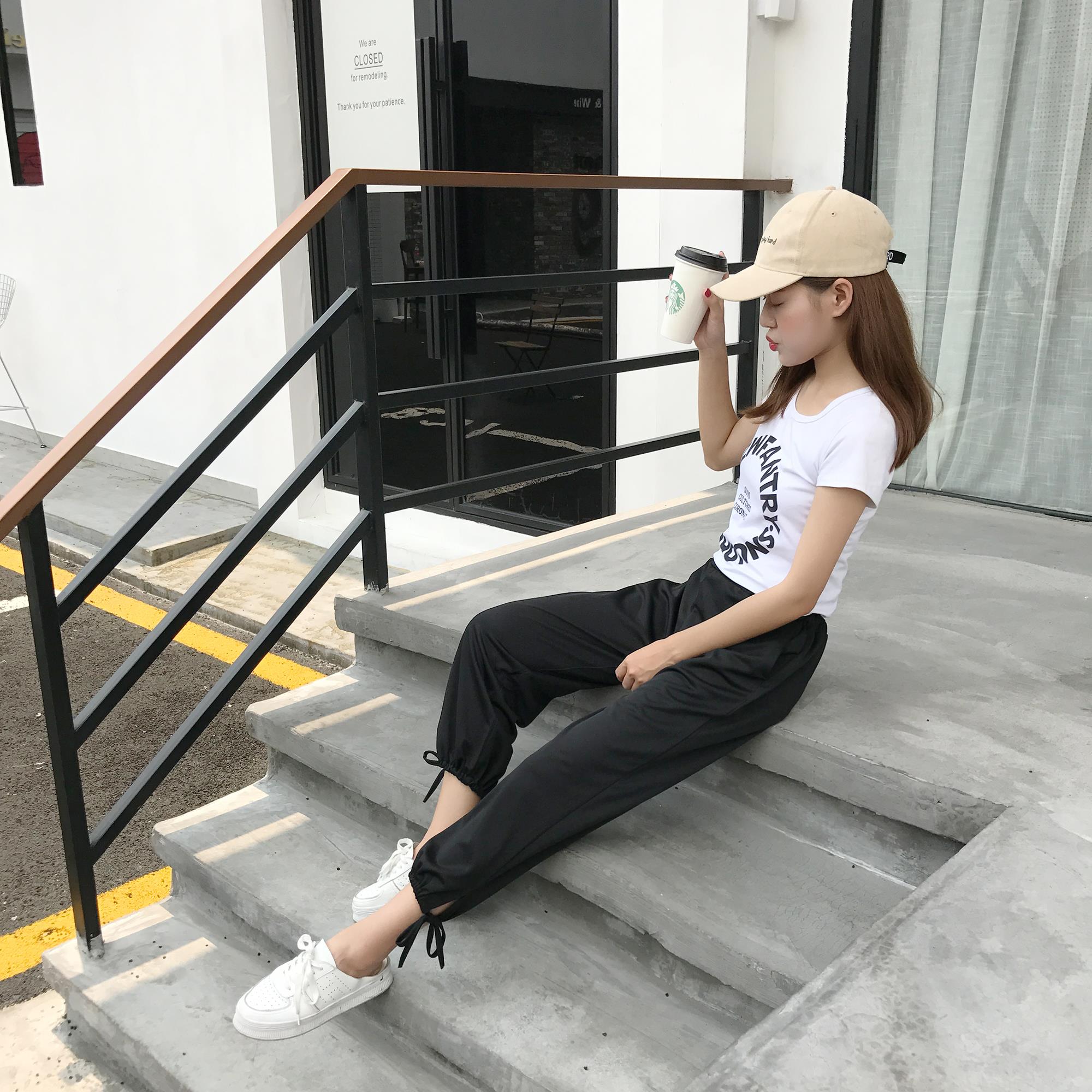 尺寸: M碼褲長83CM 腰58CM 褲腳是松緊細帶的可以調節哦 L碼褲長85CM 腰60CM 褲腳是松緊系帶的可以調節哦