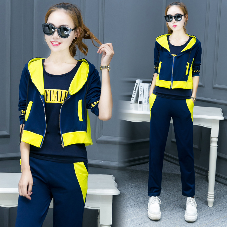 休閑運動套裝女秋季韓版女裝2016春秋新款學生長袖運動服三件套潮