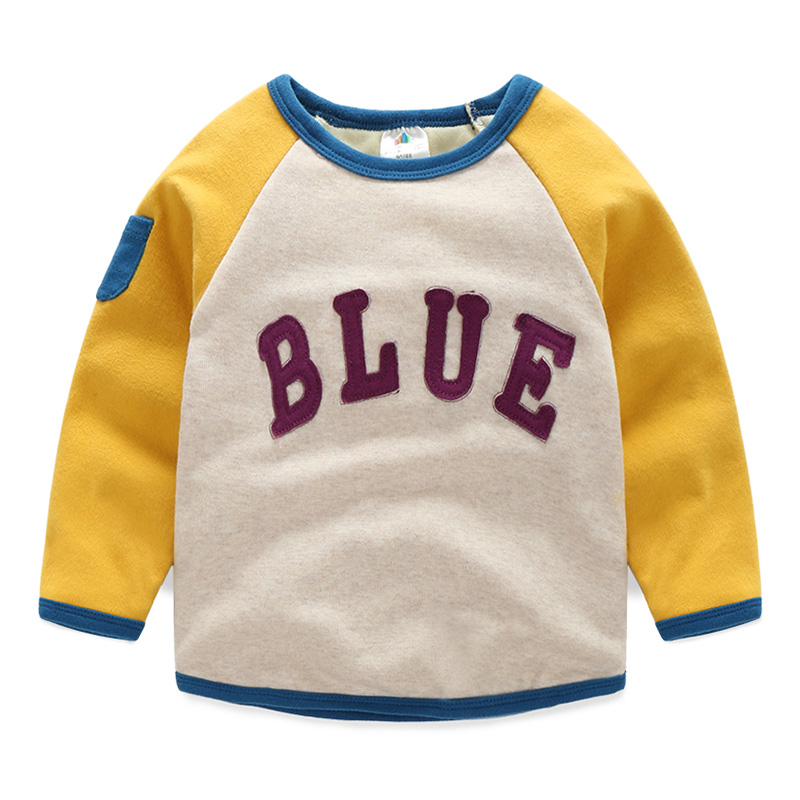 / 寶寶拼色加絨T恤 冬裝新款童裝男童裝兒童加厚打底衫tx-6386