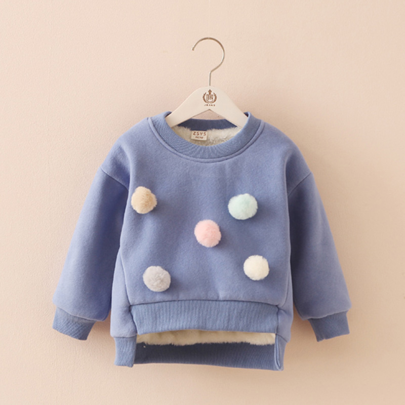 / 寶寶加絨套頭衛衣冬裝新款女童童裝兒童毛球加厚外套wt-5873