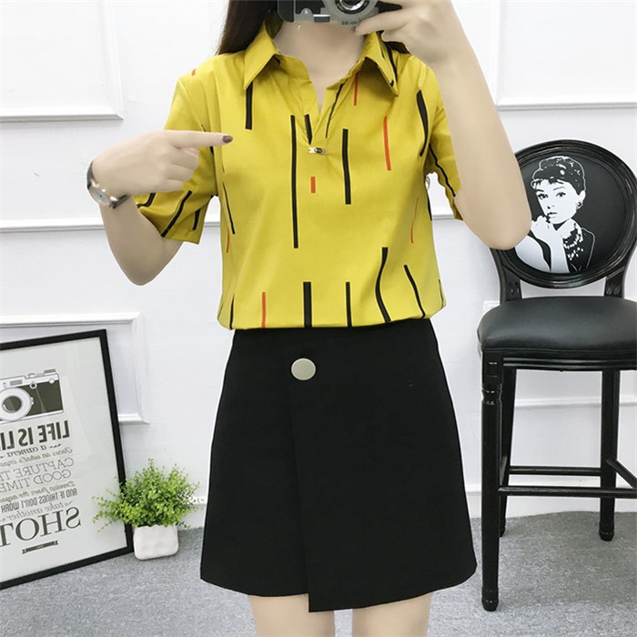 / 2017夏天新款韓版黑白豎條紋職業襯衫女短袖修身襯衣OL氣質工作服