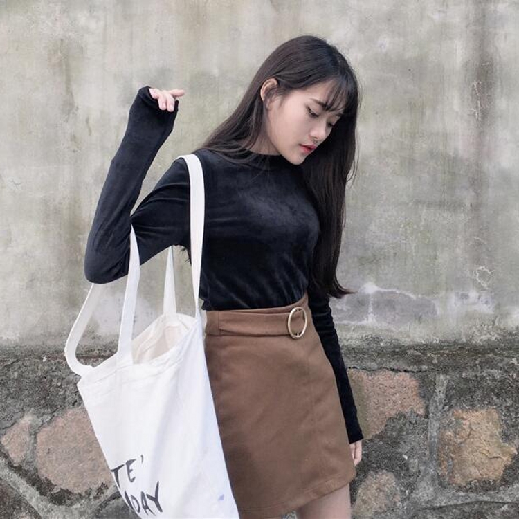 秋冬韓國修身顯瘦絲絨圓領長袖T恤女百搭純色套頭打底衫上衣