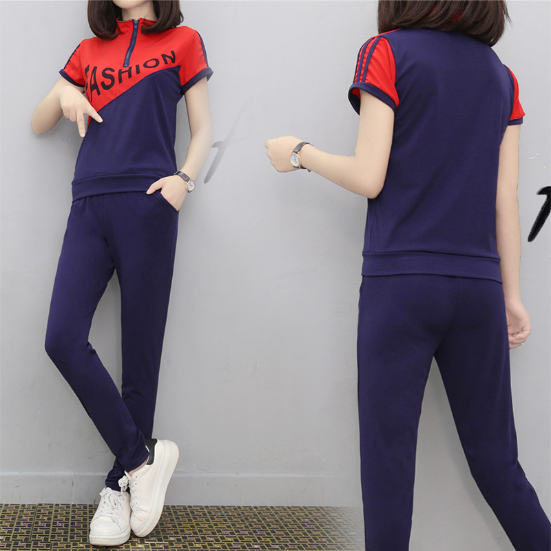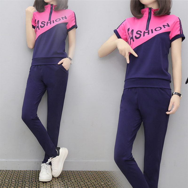 2017新款女士韓版休閑運動套服女裝學生夏季時尚薄短袖七分褲衣服