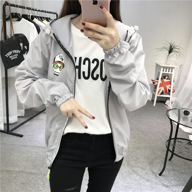 春季韓版新款字母刺繡拼色連帽棒球服短款寬松bf原宿風學生外套女