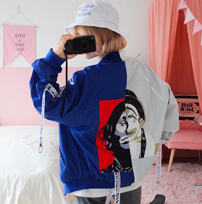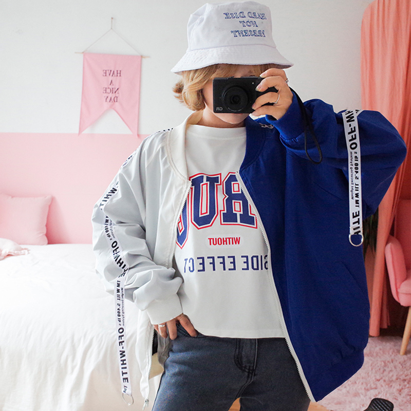 情侶裝韓版外套2017春秋新款原宿寬松百搭織帶印花棒球服女學生潮