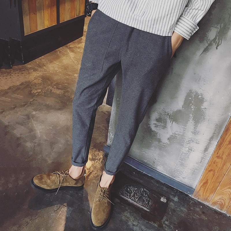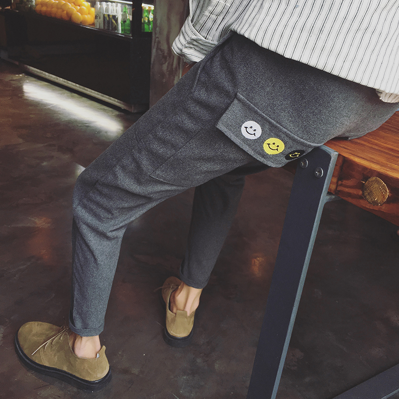秋裝新品韓版笑臉刺繡休閑褲男士修身小腳長褲男褲
