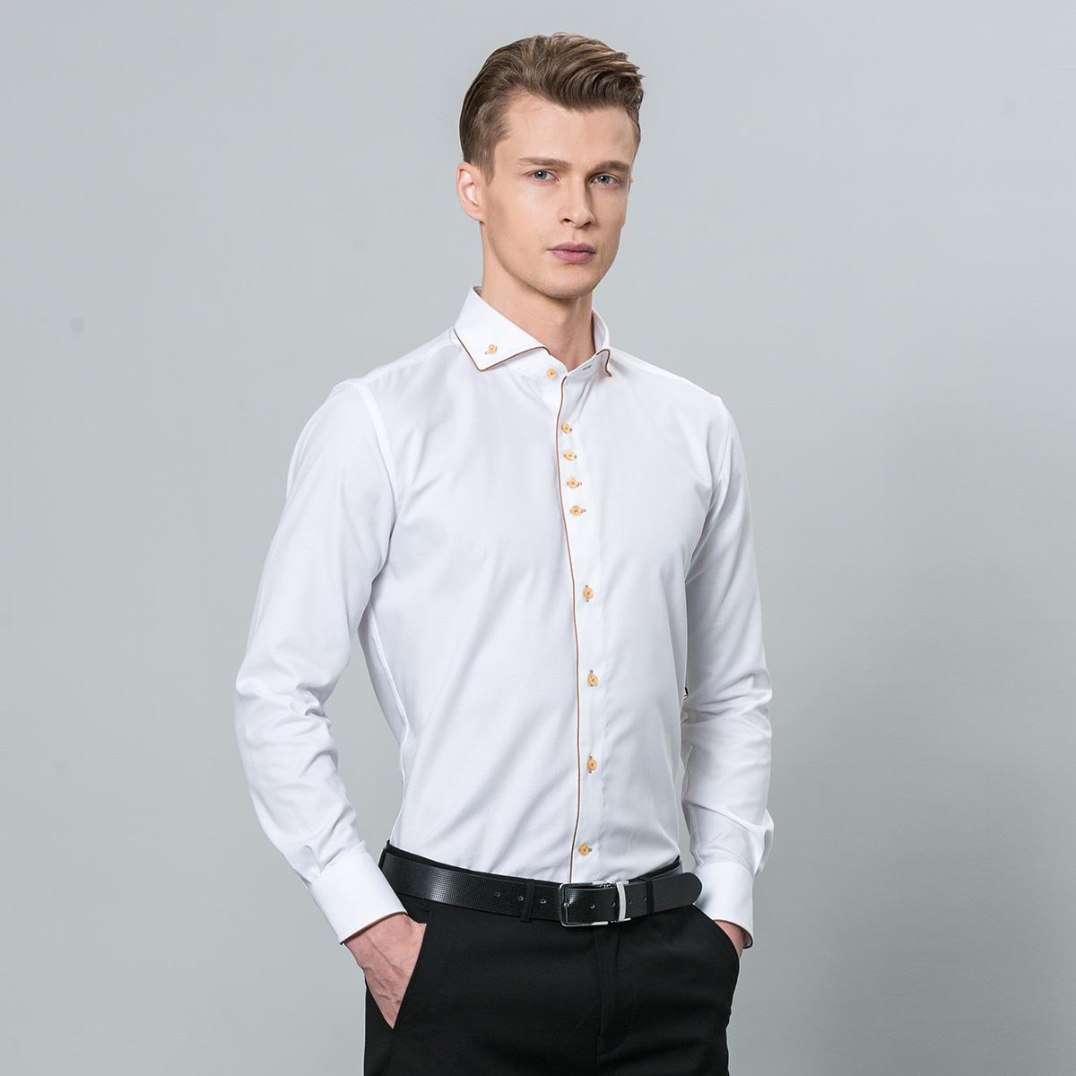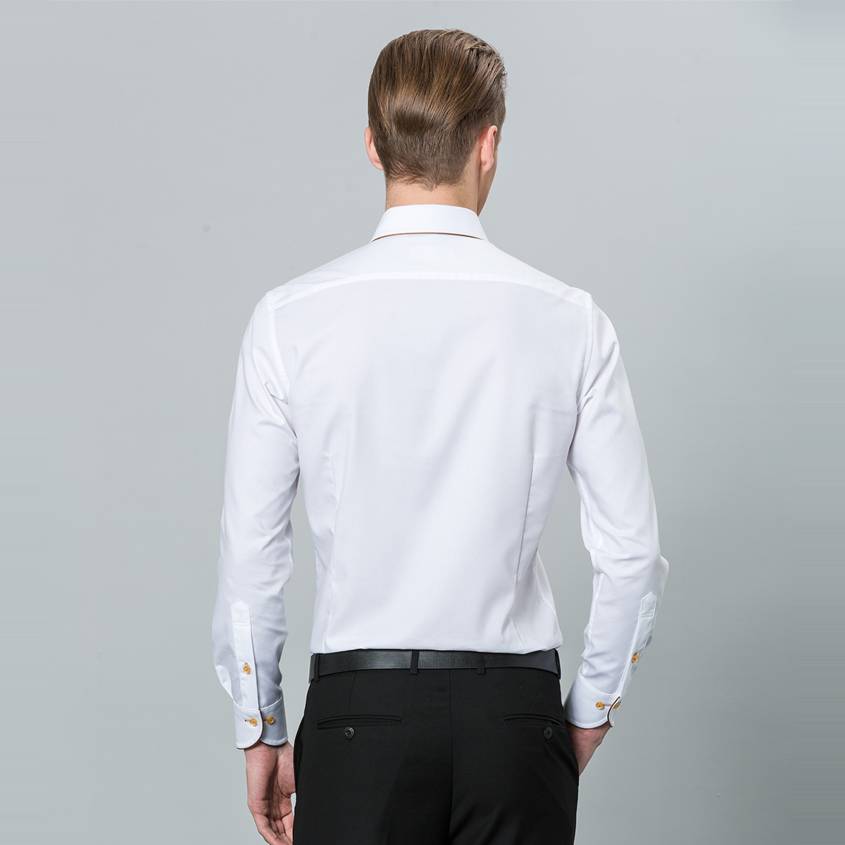 / 深海男士宮廷風白色斜紋襯衫男長袖法式修身小領純棉中年款襯衣