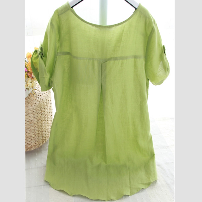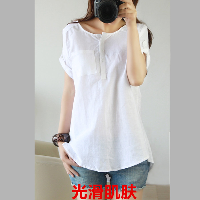 短袖棉麻T恤女寬松 2017夏裝新款女裝潮韓版大碼休閑亞麻襯衫女式