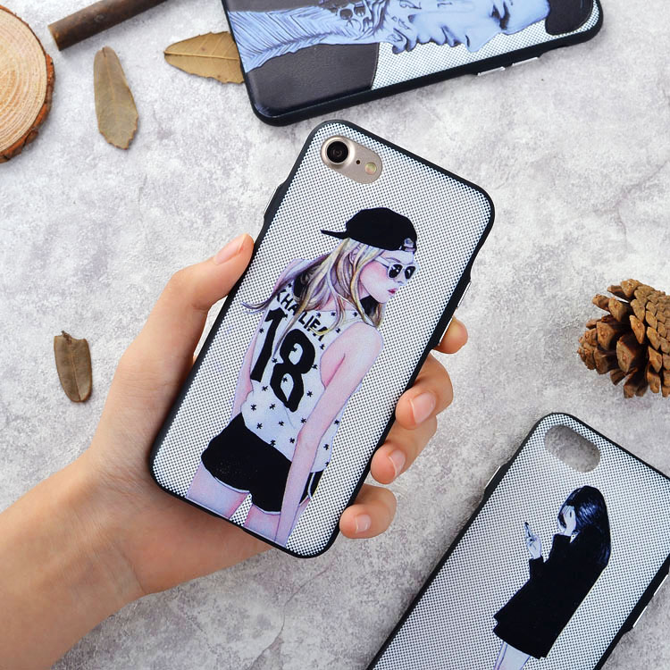 日韓蘋果7Plus手機殼iphone7保護套硅膠情侶軟殼彩繪浮雕男女潮牌
