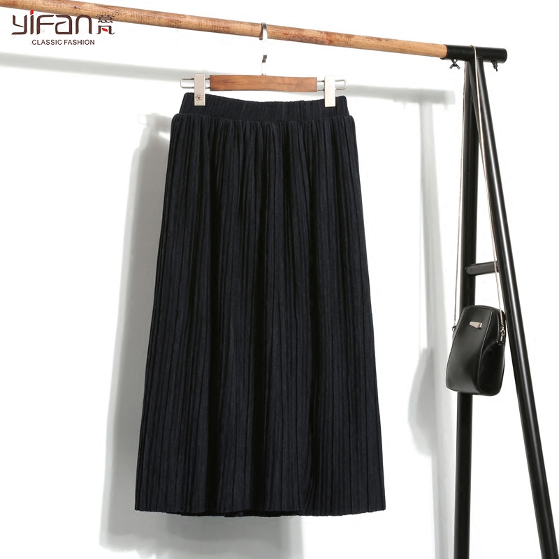 / 秋季新款韓版松緊腰百褶中長裙女復古純色半身裙顯瘦風琴裙潮
