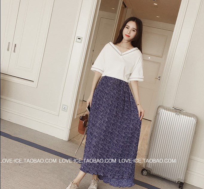 / 2017夏季新款韓版百搭寬松顯瘦學院休閑前后V領短袖T恤上衣女裝潮
