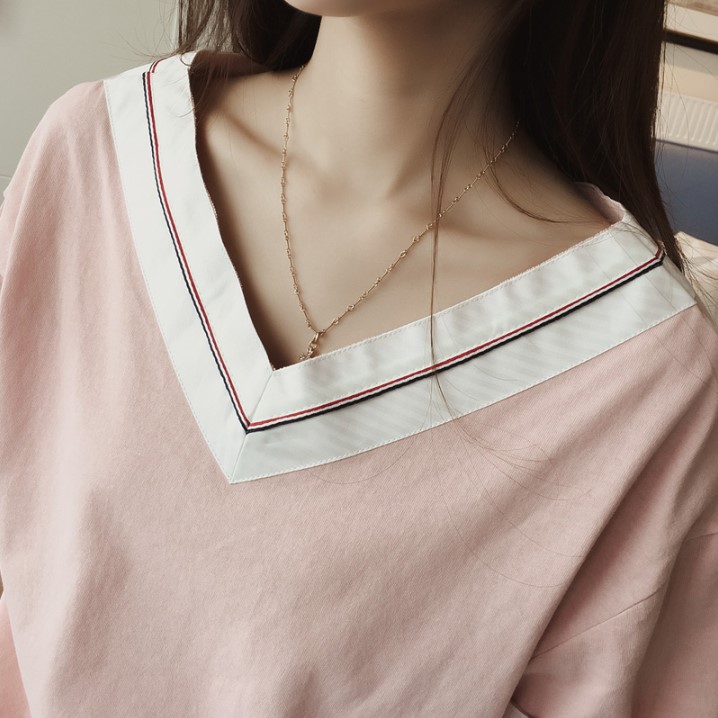 2017夏季新款韓版百搭寬松顯瘦學院休閑前后V領短袖T恤上衣女裝潮