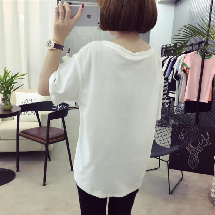 / 女裝短袖上衣女寬松韓版夏季純色百搭大碼T恤女胖MM休閑V領半袖潮