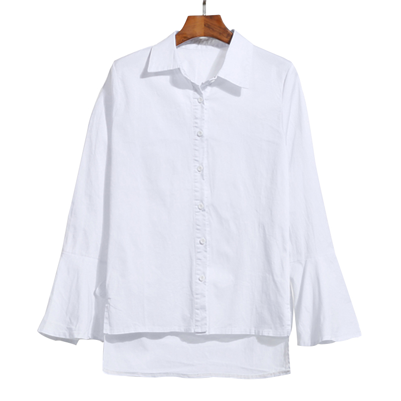 / 新春裝白襯衫荷葉袖寬松韓版休閑百搭中長款純棉打底襯衣
