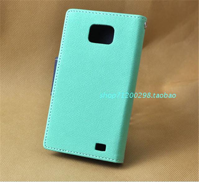 三星i9100雙色手機套Galaxy S2左右開翻皮套插卡錢包款保護殼批發