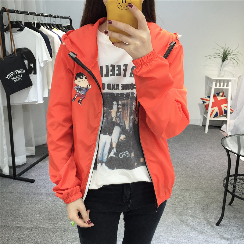 2017春夏新款韓版原宿風學生外套女 寬松百搭連帽bf休閑薄款外套