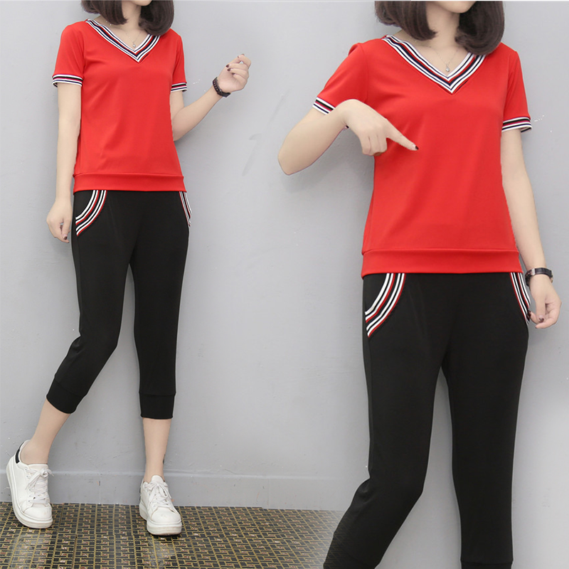運動套裝女夏季2017新款時尚寬松短袖七分褲女裝大碼休閑服兩件套