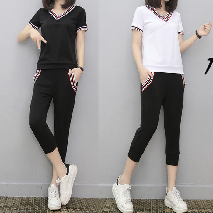 / 運動套裝女夏季2017新款時尚寬松短袖七分褲女裝大碼休閑服兩件套