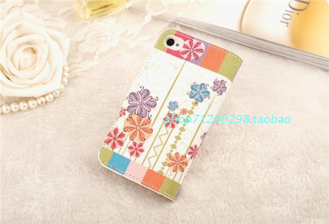 蘋果iphone4S花紋皮套彩繪手機套 左右開翻支架插卡保護外殼包郵
