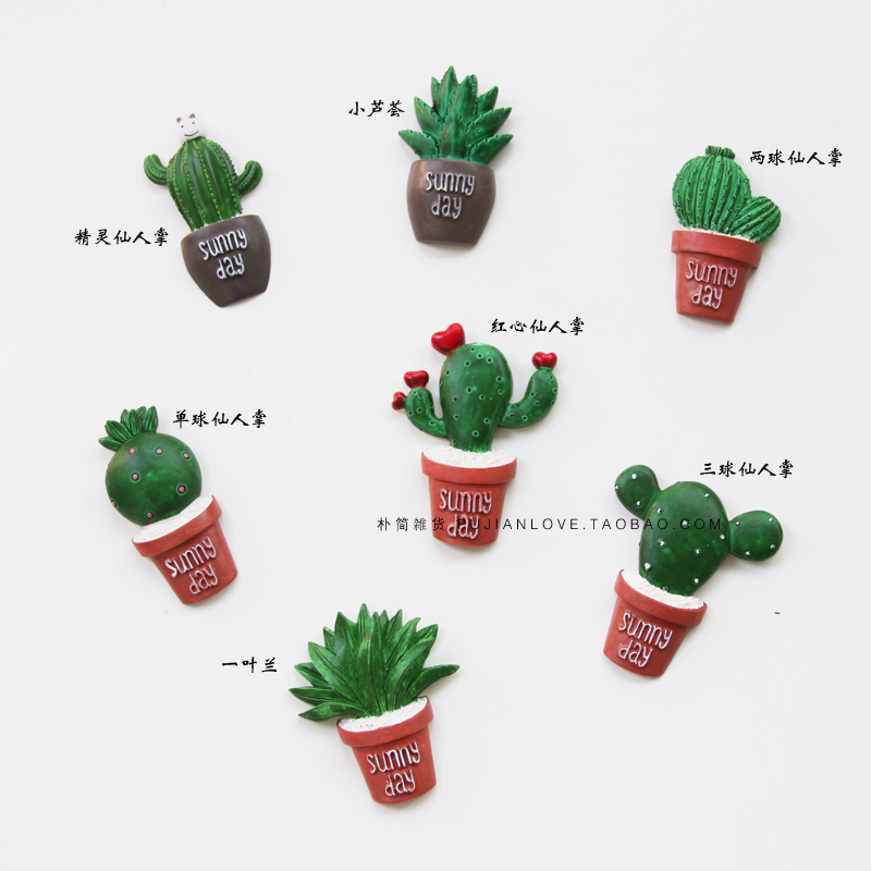 / 外貿綠色植物樹脂冰箱磁性貼 可愛仙人掌多肉花卉吸鐵石留言貼