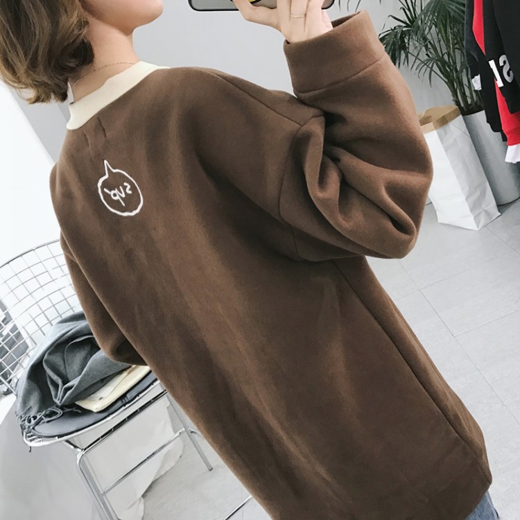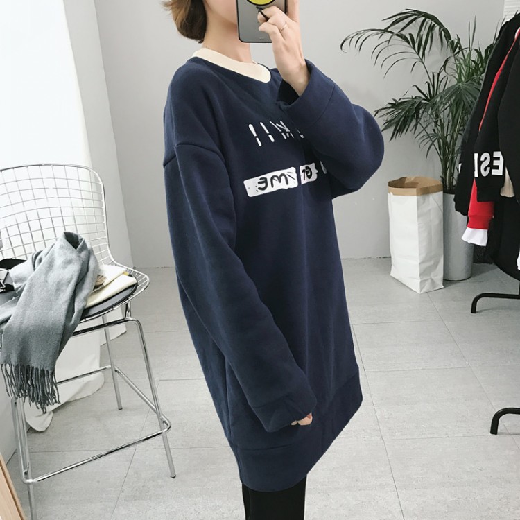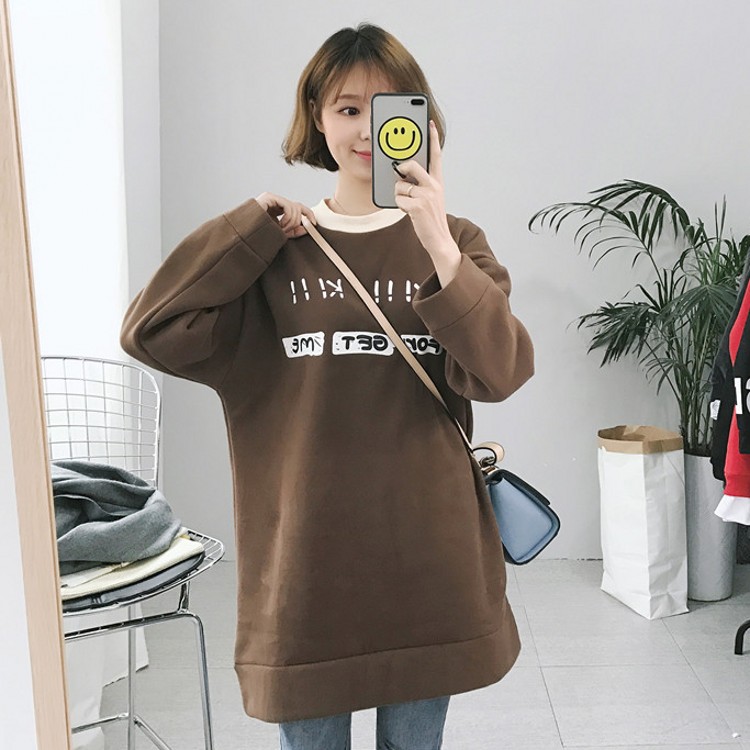 冬款韓國學院風厚實字母圓領套頭加絨加厚百搭中長款衛衣女