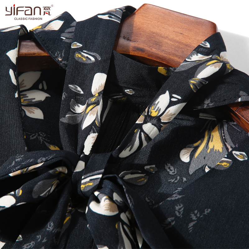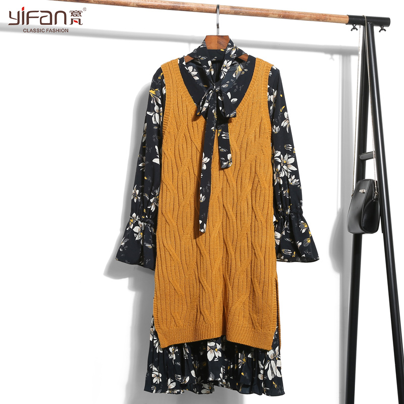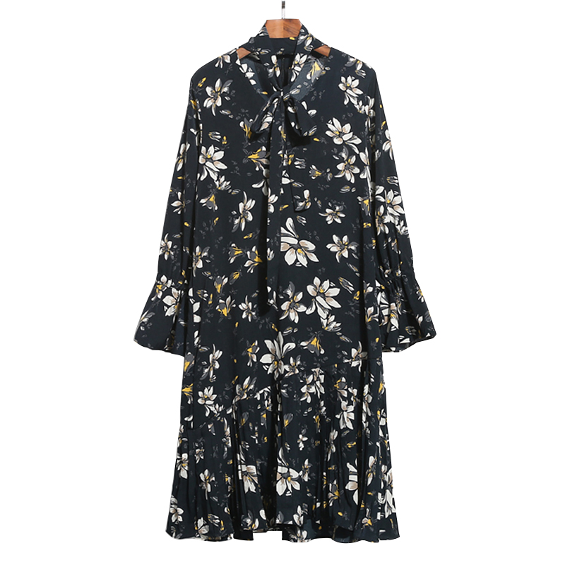 / 初春韓版復古雪紡長袖碎花連衣裙寬松顯瘦喇叭袖中長款百褶裙女裝