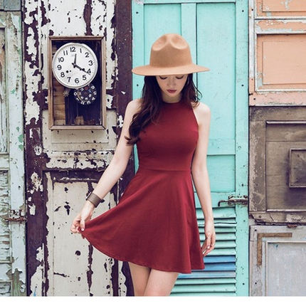 2017新款掛脖連衣裙 無袖高腰修身顯瘦優雅復古小紅裙連衣裙 短裙