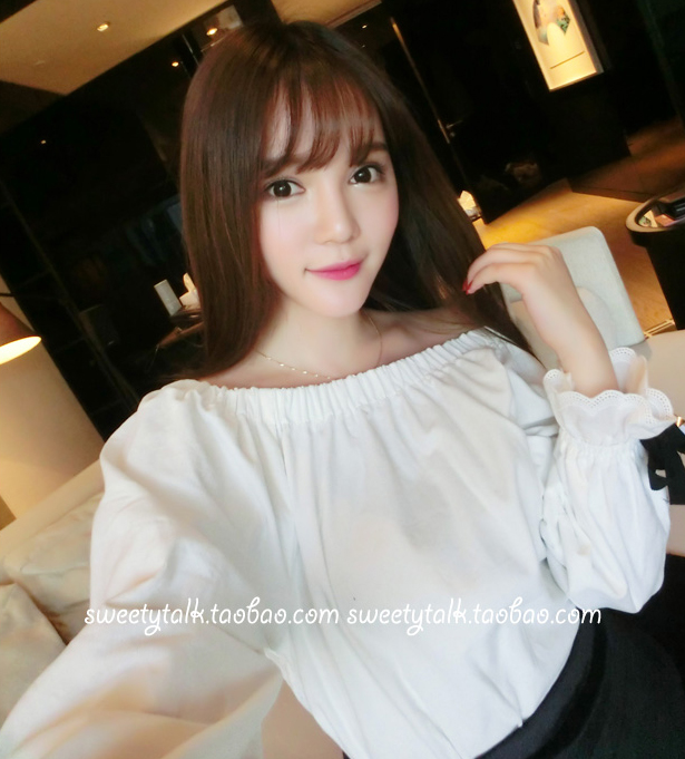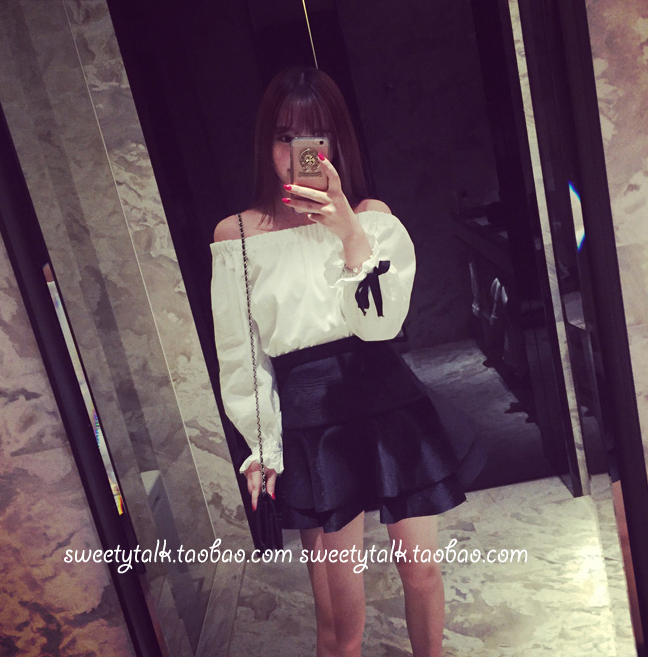 / 春夏新款韓范閨蜜氣質甜美蝴蝶結純色露肩松緊顯瘦打底上衣女學生