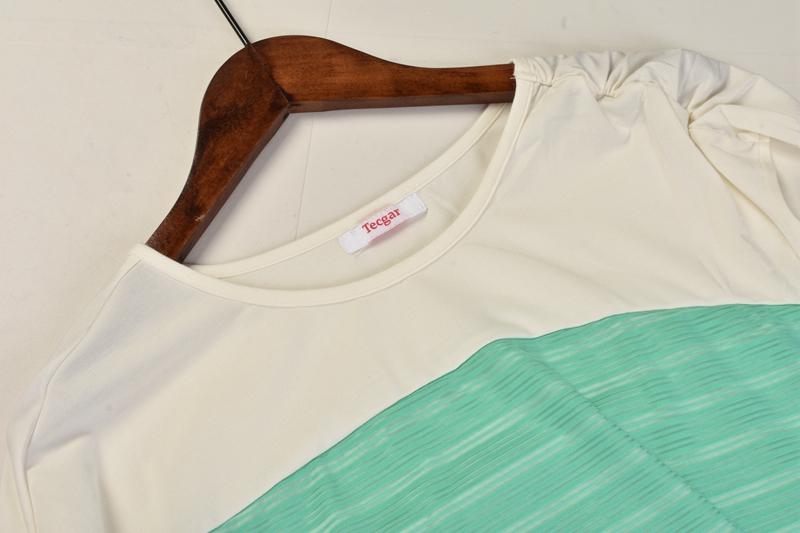 / T恤貨拼色不規則休閑百搭春夏新款女裝圓領大碼上衣