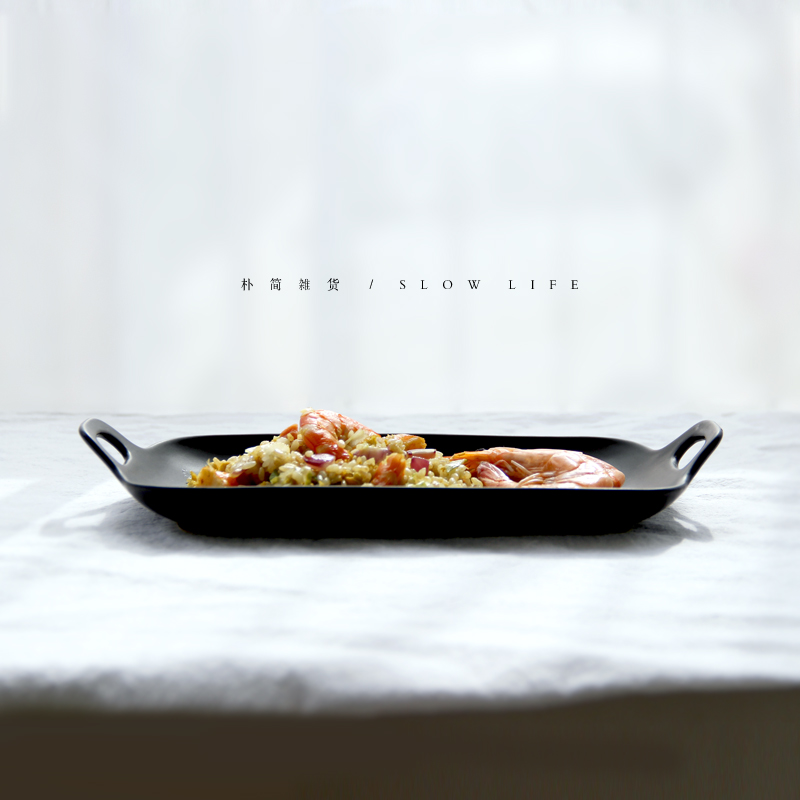 / 樸簡 日式純色啞光雙耳長方陶瓷餐盤西餐牛排盤 餐具盤子菜盤