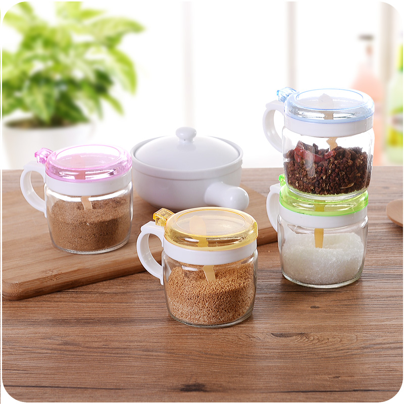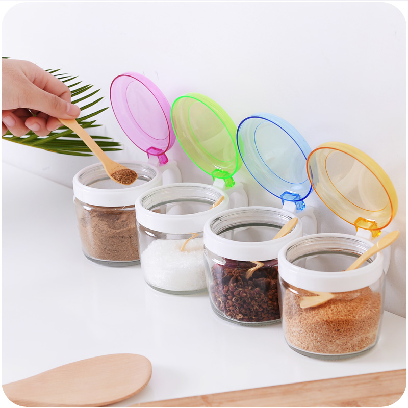 / 廚房家用品創意玻璃密封調味品按壓罐蓋燒烤調料瓶佐料盒鹽罐瓶罐