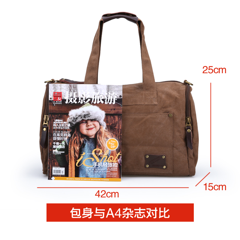 / 男士帆布短途旅行包歐美單肩手提行李袋小型帆布旅游包背包