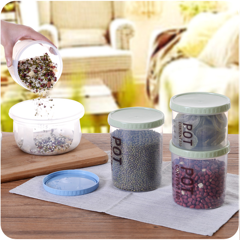 圓形旋轉廚房透明零食收納盒儲物罐塑料五谷雜糧收納罐食品密封罐