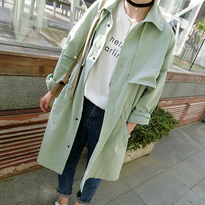 2016春秋新款韓版寬松BF純色工裝薄款風衣女中長款開衫外套學生潮