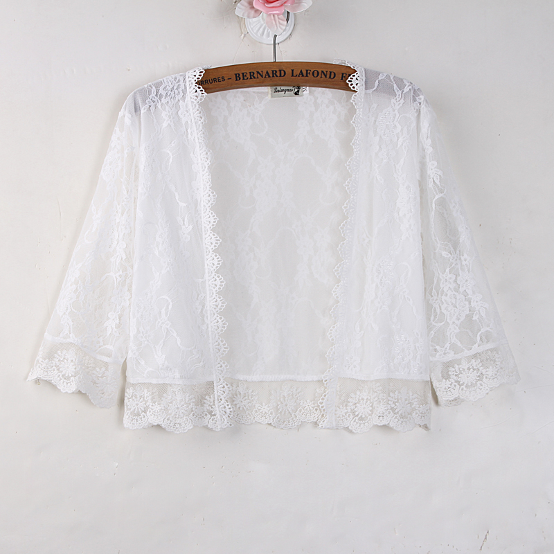 春夏女蕾絲雪紡百搭中袖薄坎肩大碼時尚氣質短款開衫小披肩防曬衫