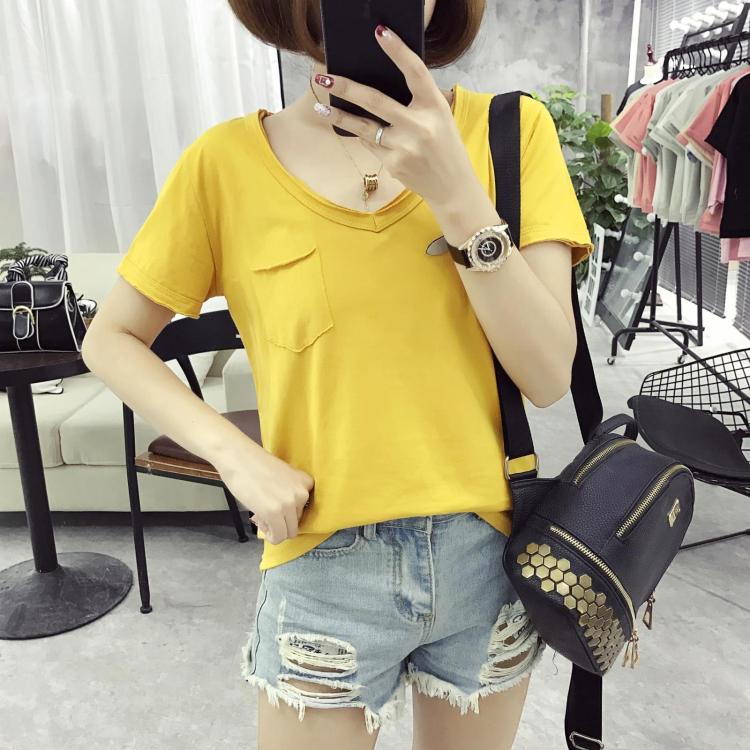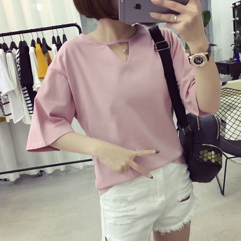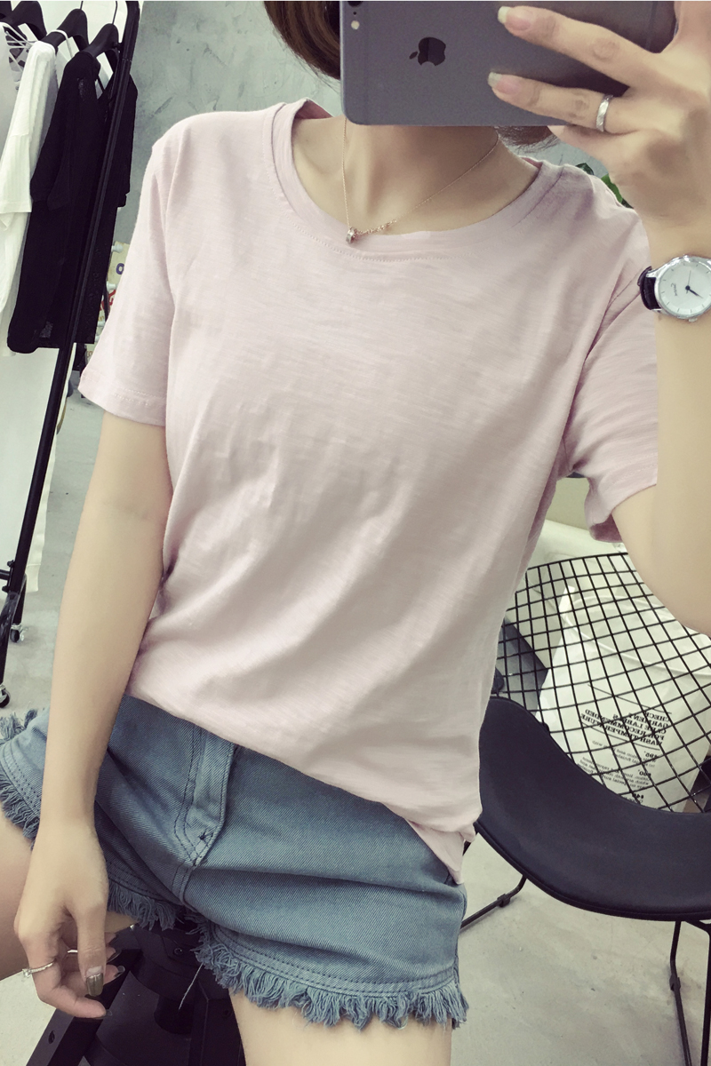 / 夏季韓版女裝純色竹節棉上衣女寬松短袖大碼夏裝T恤衫潮學生打底