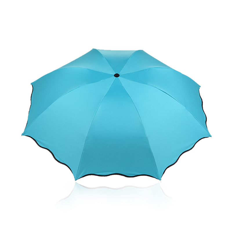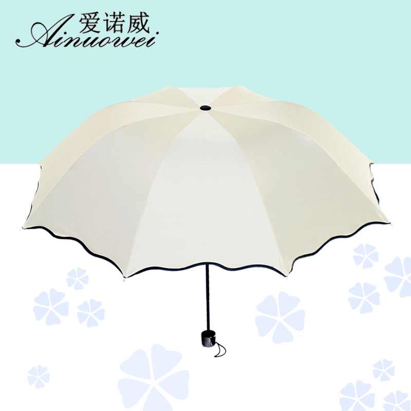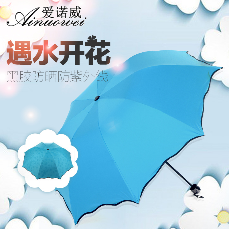 折疊黑膠防曬遮陽太陽傘晴雨傘兩用遇水開花雨傘女防紫外線三折傘