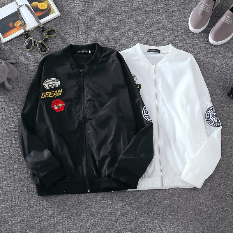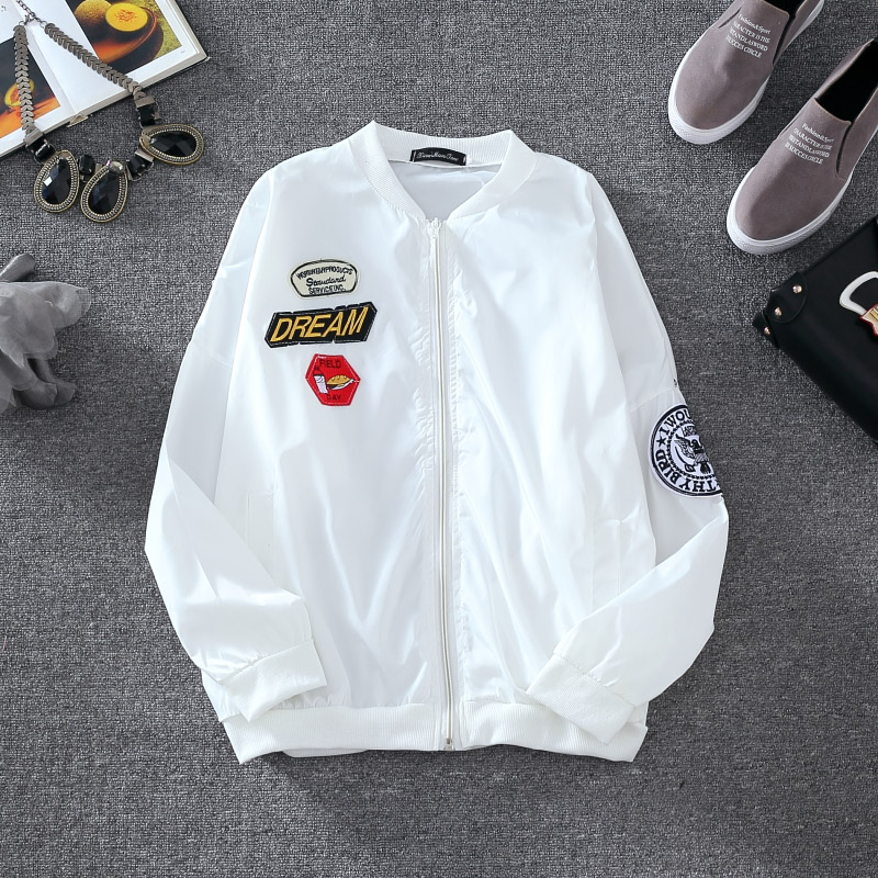 / 2017春秋新款韓版BF風寬松棒球服少女長袖百搭印花防曬衣短外套潮