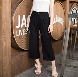 / 2017夏季雪紡闊腿褲新款韓版高腰細帶顯瘦休閑褲學生七分直筒褲