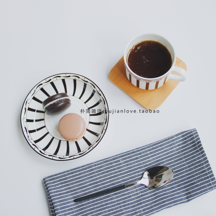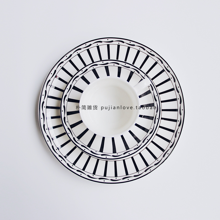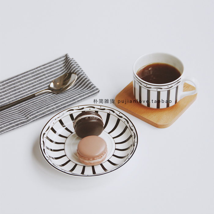 北歐風餐具 黑白經典陶瓷西餐盤牛排盤 點心盤 咖啡杯碟套裝