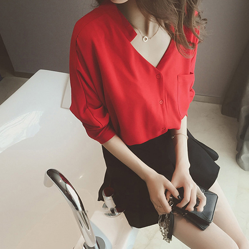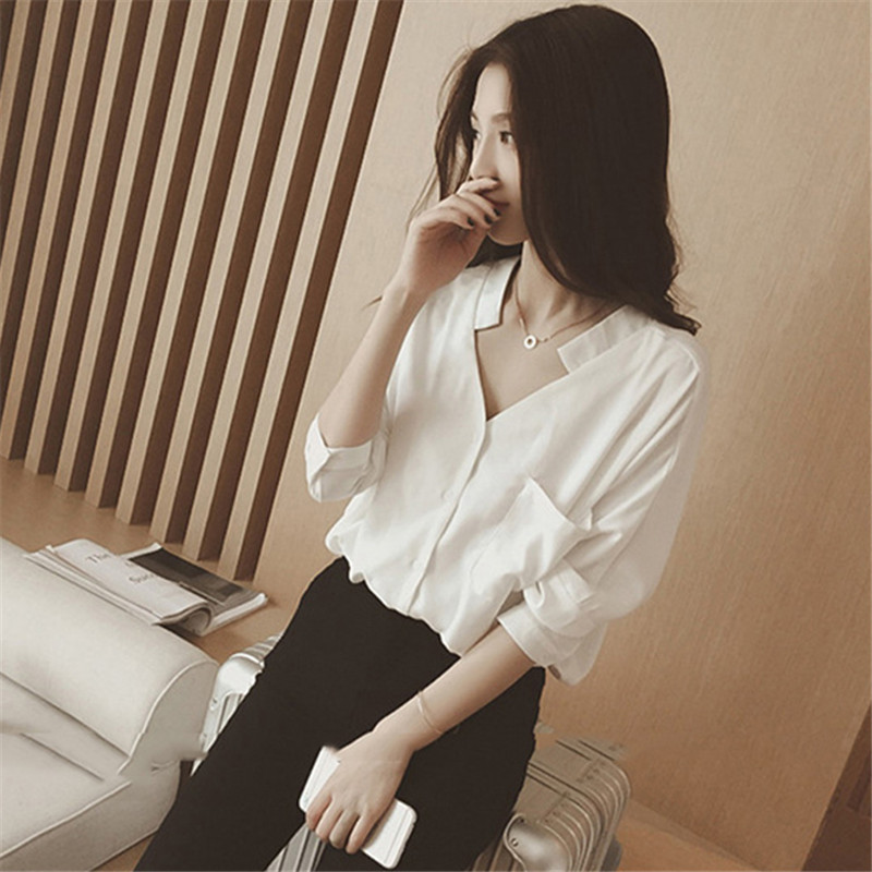 2017春夏新款韓版寬松百搭雪紡襯衫女春款長袖學生白色襯衣韓范