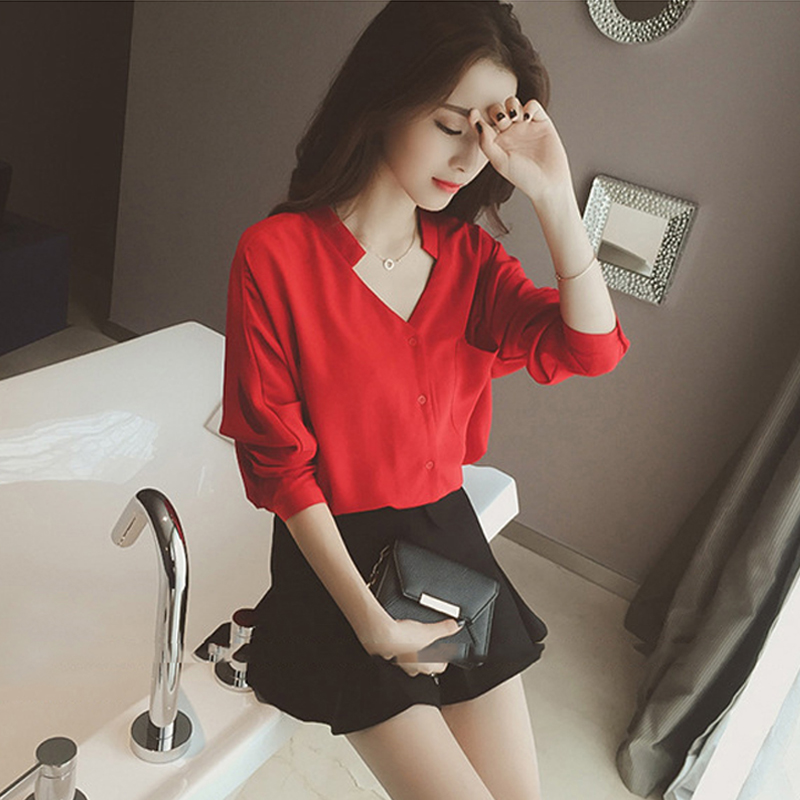 / 2017春夏新款韓版寬松百搭雪紡襯衫女春款長袖學生白色襯衣韓范