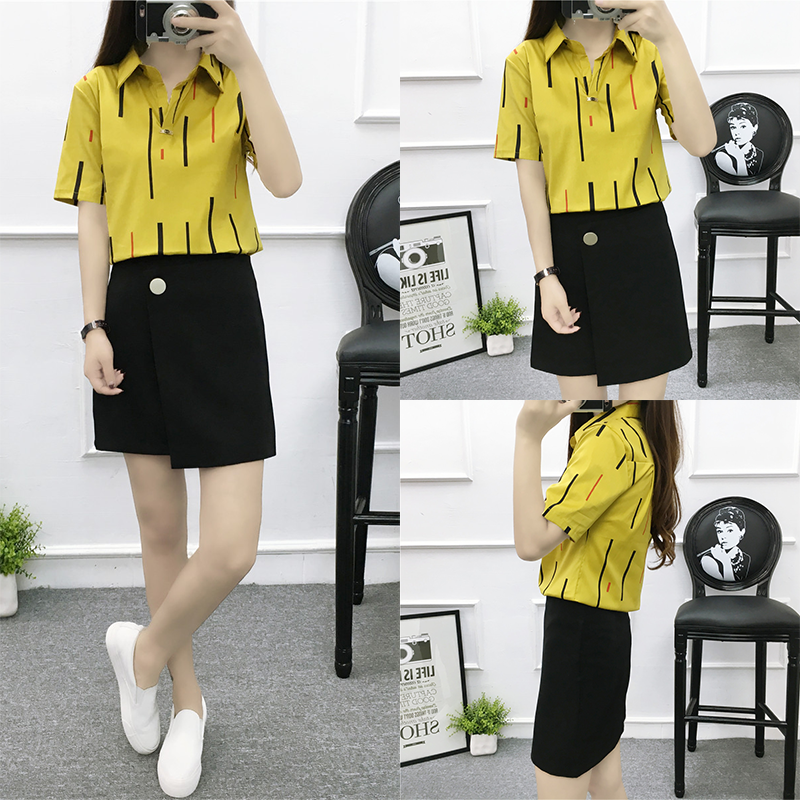 / 條紋t恤女短袖小衫百搭ol寸衫夏韓版v領大碼寬松雪紡上衣半袖襯衣