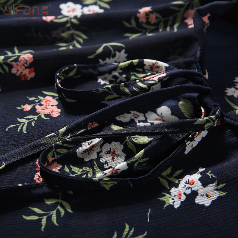 春夏寬松顯瘦七分袖百搭女裝上衣喇叭袖碎花雪紡上衣印花雪紡衫女