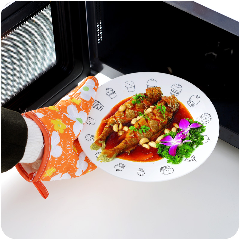 時尚花色廚房微波爐隔熱防燙棉手套加厚耐高溫烤箱烘焙手套單只售