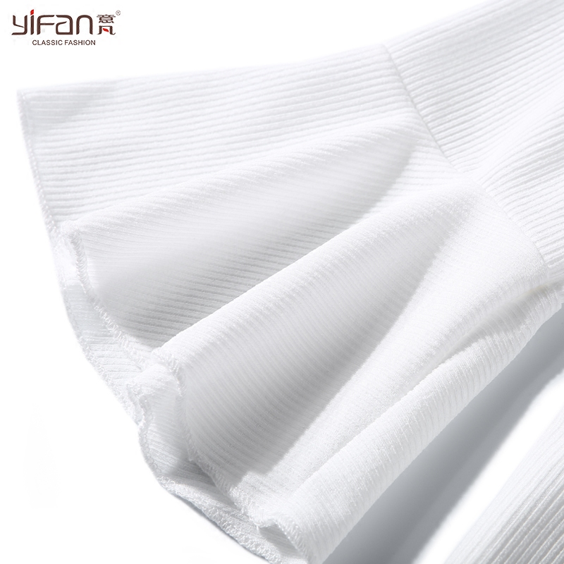 / 夏季七分袖女T恤喇叭袖上衣修身短款白色圓領打底衫韓版荷葉邊