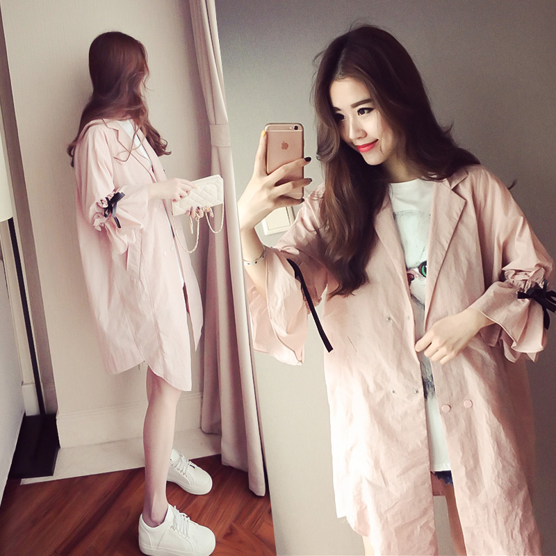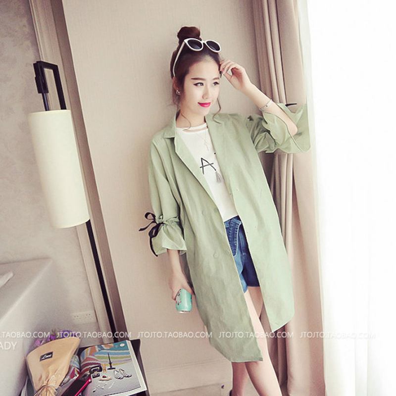 韓版夏裝新款中長款薄外套百搭風衣開衫七分袖寬松大碼防曬衣服女