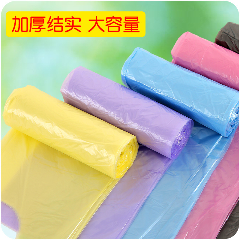 / 背心手提式廚房居家用大號裝垃圾袋一次性純色加厚塑料袋五連卷