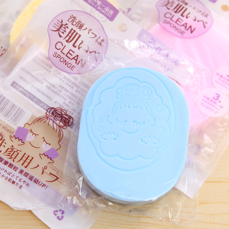 糖果色壓花珍珠橢圓形按摩洗臉撲海綿抗菌潔面柔軟細膩卸妝去角質