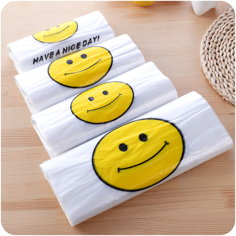 加厚透明笑臉食品袋手提塑料袋子超市購物打包袋背心馬夾袋50個裝